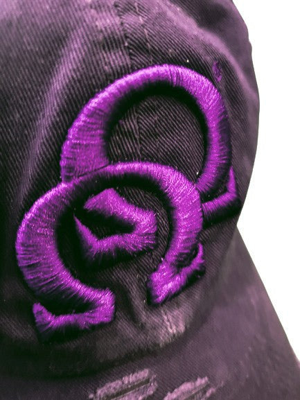 Purple Omega Psi Phi Double Hooks 3D effect On Distressed Cap