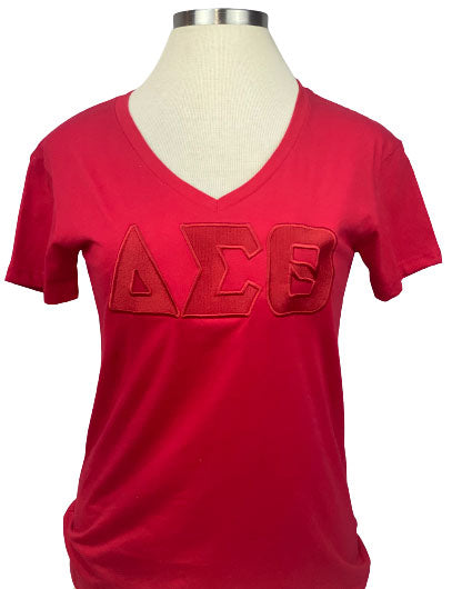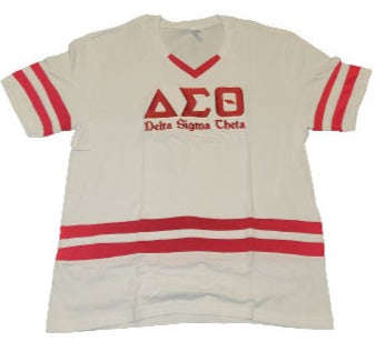 ΔΣΘ Varsity Jersey Embroidered G2 V-Neck Tee (*Plus sizes available*)