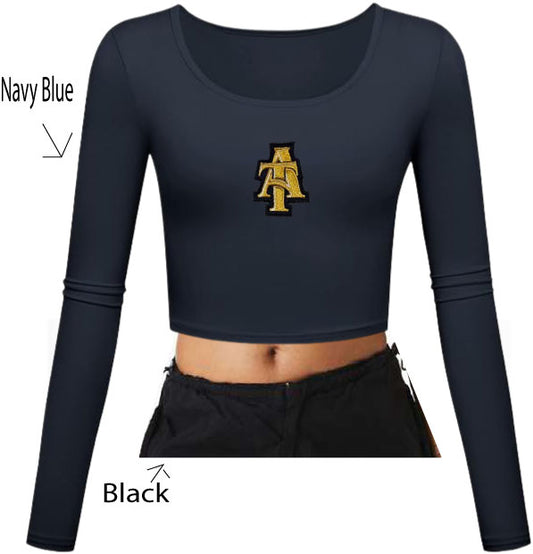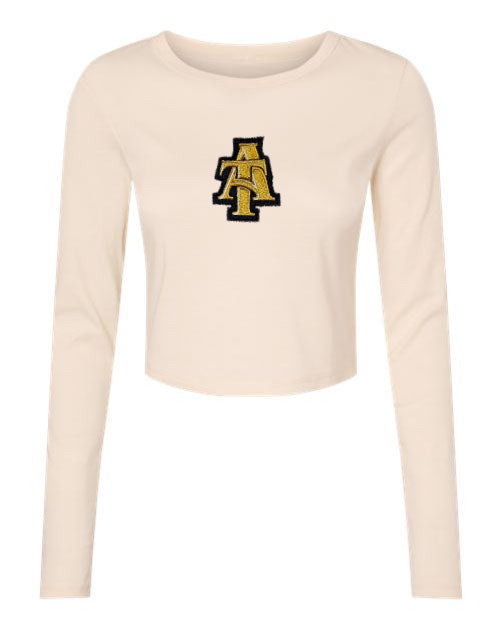 NC A&T Interlocking A and T Fitted Scoop Neck LS Crop Top