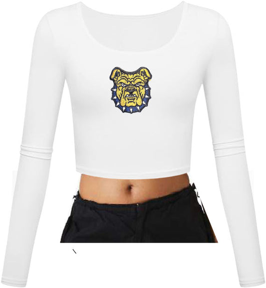 NC A&T Aggie Bulldog Face Fitted Scoop Neck LS Crop Top