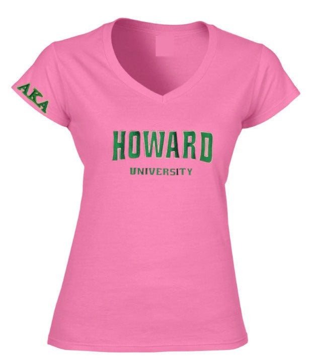 100% embroidered t-shirt available in ladies cut crewneck, ladies cut v-neck, and unisex cut. Ladies cut tees available up to size 3X.