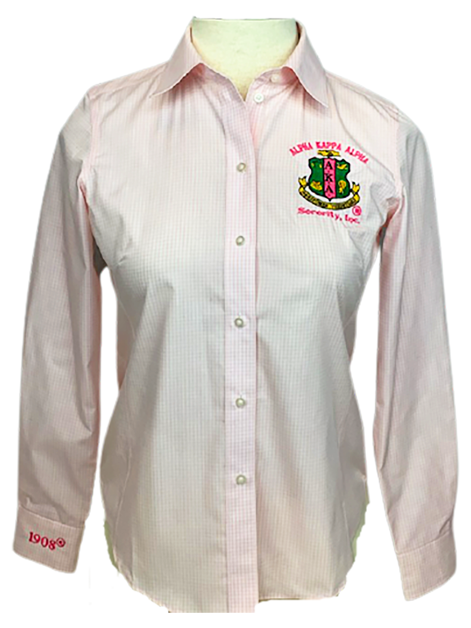 AKA Embroidered Light Pink Gingham Button Down