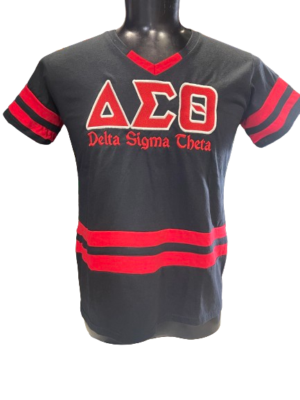 ΔΣΘ Varsity Jersey Embroidered G2 V-Neck Tee (*Plus sizes available*)
