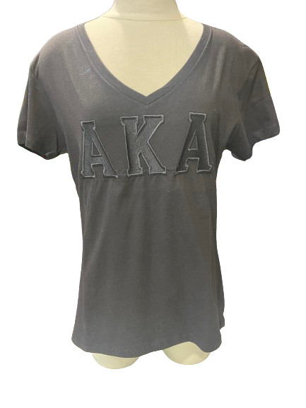 AKA Black Tone on Tone V-Neck Embroidered Tee