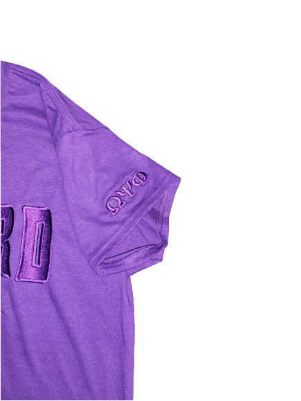 100% embroidered T-shirt. Three locations (Front and both sleeves).