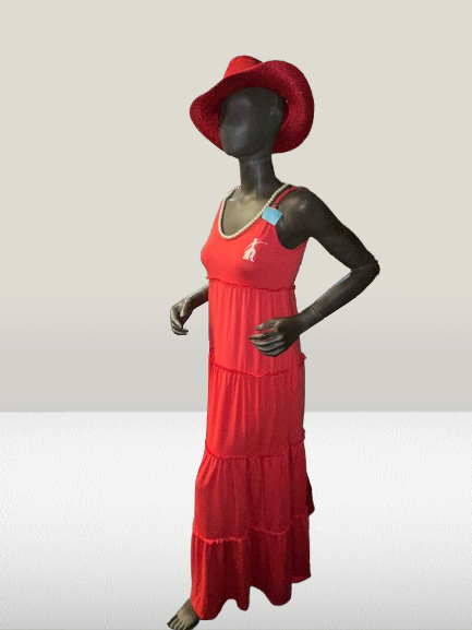 Embrace the strength and elegance of Delta Sigma Theta with this stunning red spaghetti strap maxi dress featuring the iconic Lady Fortitude embroidery. This flowing, feminine dress combines comfort with powerful symbolism, making it perfect for special occasions, sorority events, or any time you want to make a statement while representing your sisterhood.