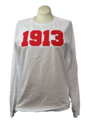 DST 1913 Chenille White Ladies Long Sleeve Tee