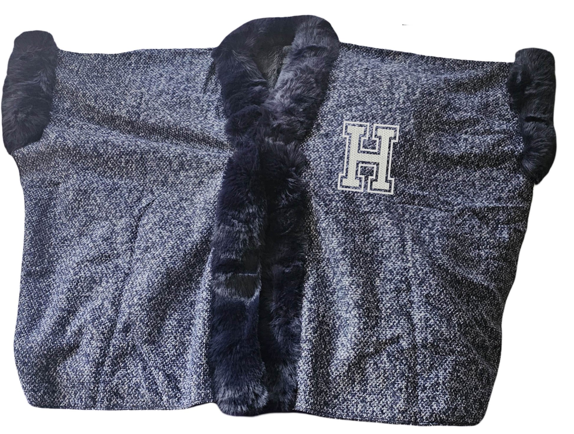 100% embroidered, soft with faux fur lining for warmth while still being stylish.